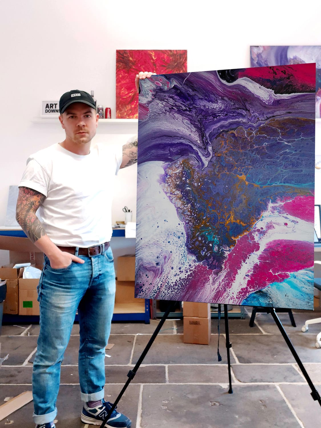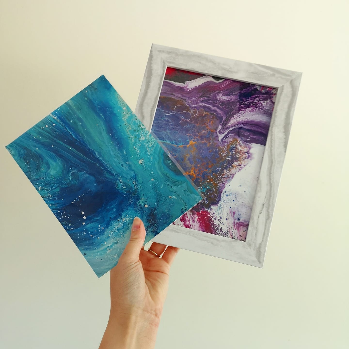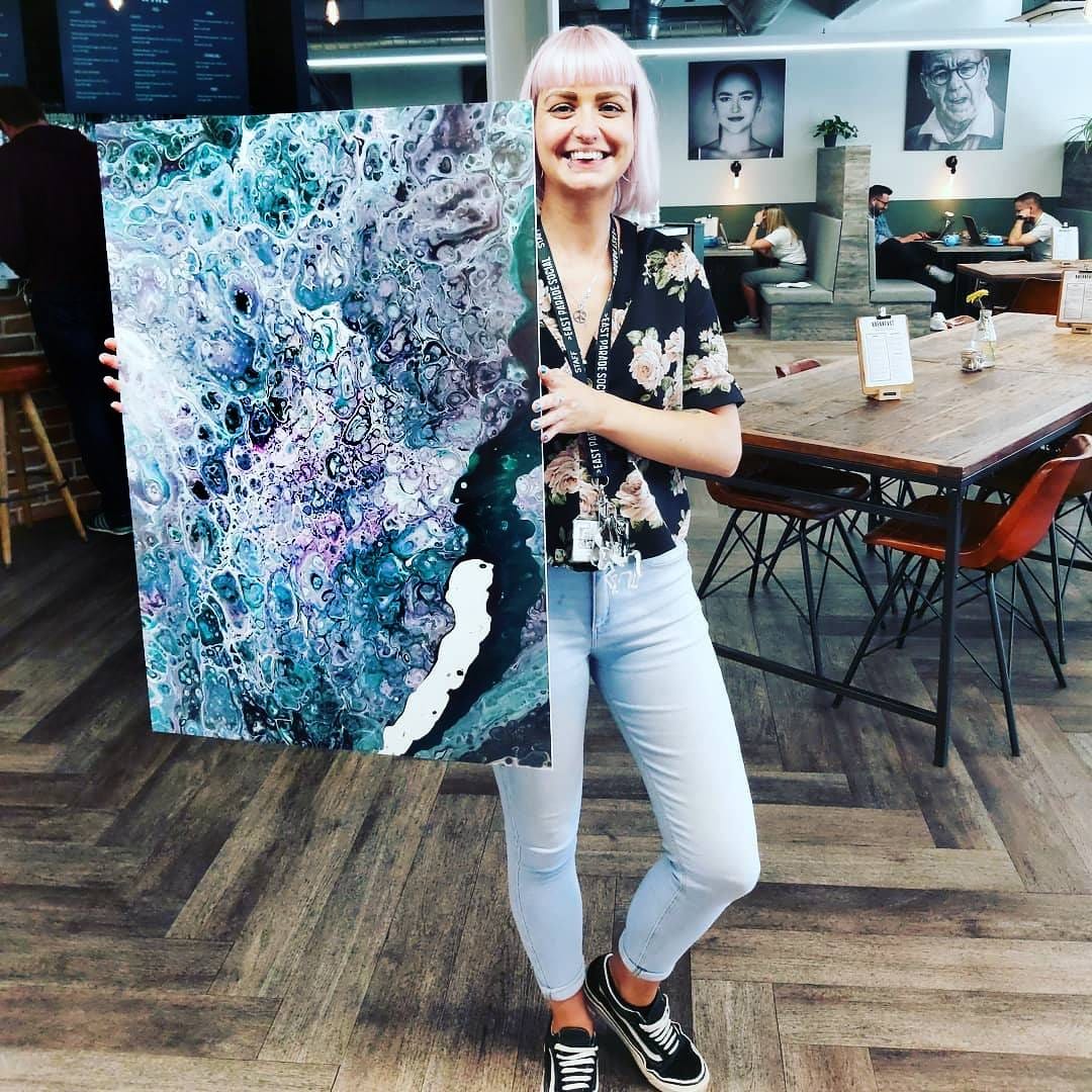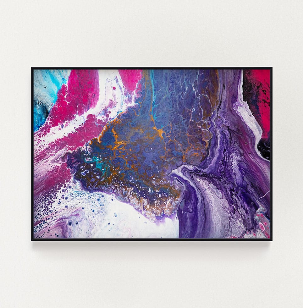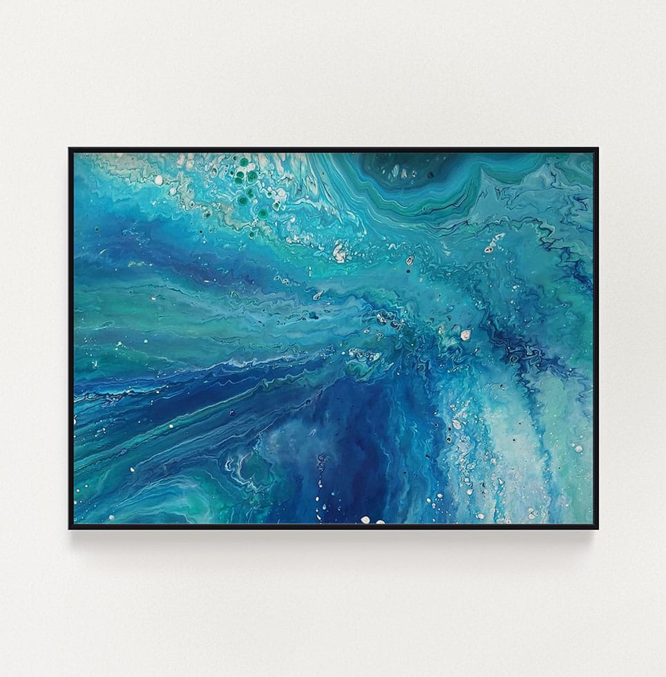 Using poured acrylic and layered colour, I create pieces that hold movement, tension and calm all at once.